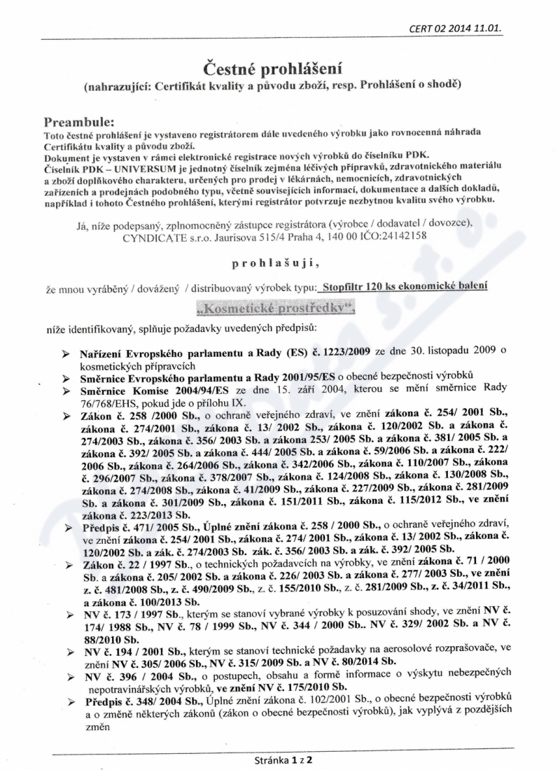 V našem e-shopu je možno objednat pouze volně prodejné zboží. Pokud by došlo k zobrazení sortimentu, který není ve volně prodejném režimu, nepovažuje se toto za nabídku k prodeji, ale jde pouze o informaci o ceně a tudíž nebude obchodováno.
