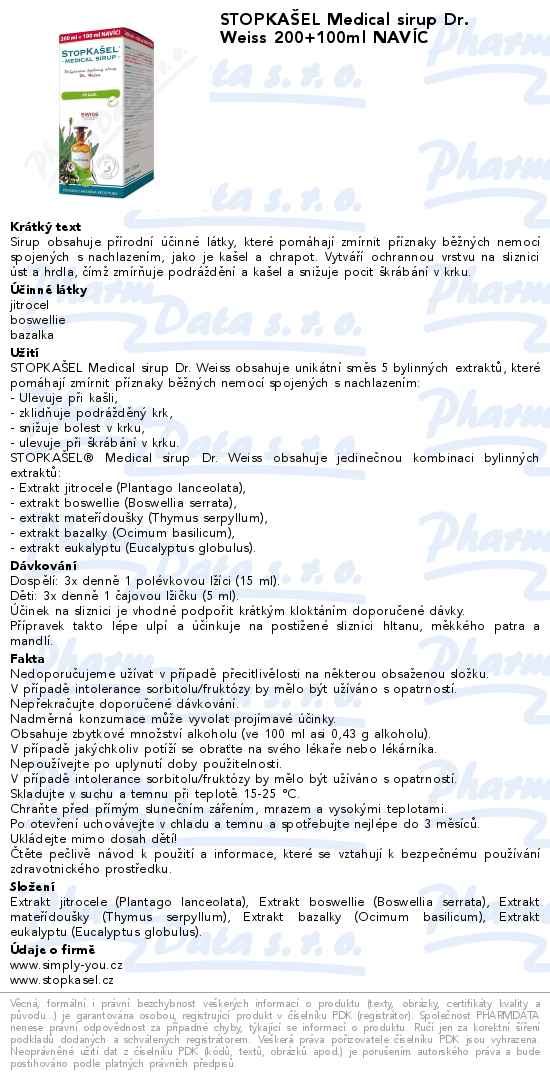STOPKAŠEL Medical sirup Dr. Weiss 200+100ml NAVÍC