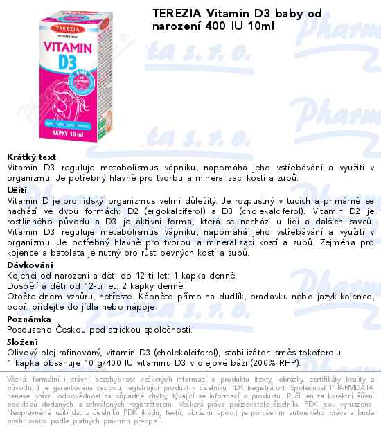 TEREZIA Vitamin D3 baby od narození 400 IU 10ml